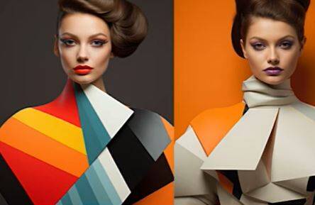 10. Geometric Vogue: Embrace geometric patterns and shapes in a chic fashion portrait. --ar 16:9