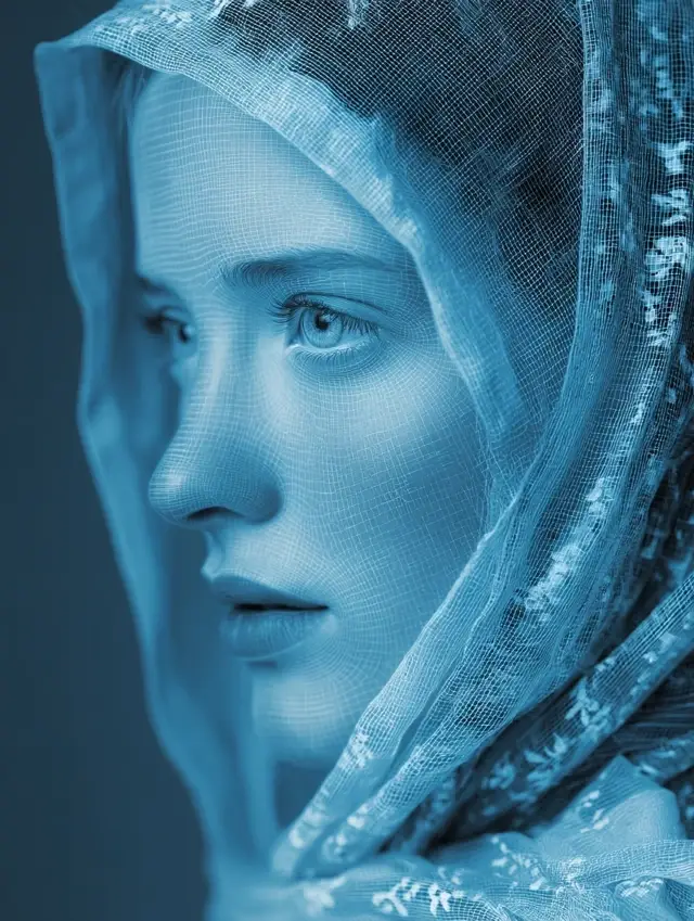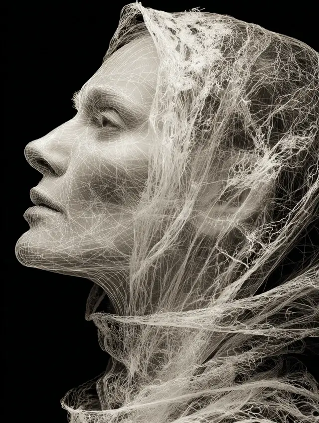 vein-mapped facial lines – biological or x-ray style, translucent paths
