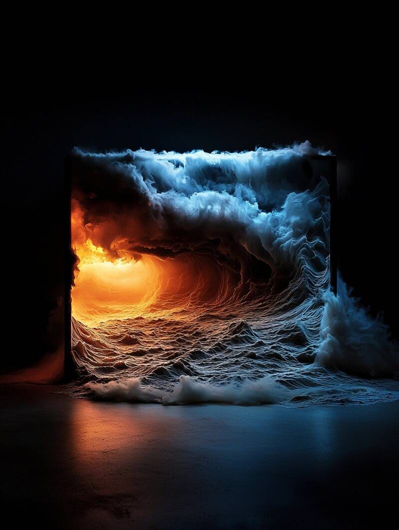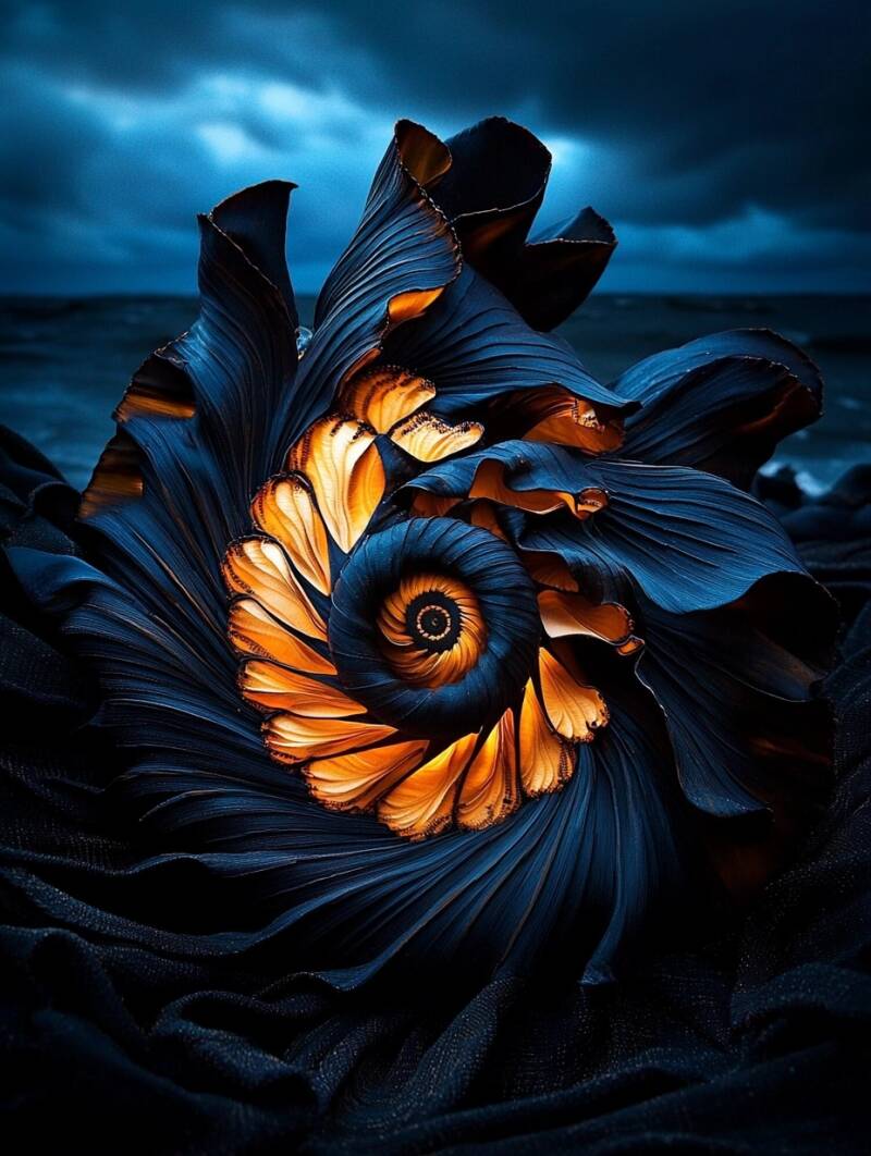 - Glowing Waves: Dark blue ocean waves with golden accents