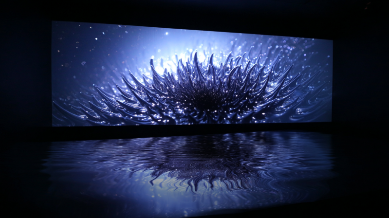 Ferrofluid in virtual reality, VR art experience, immersive magnetic sculpture, digital ferrofluid world --chaos 5 --ar 16:9 --raw
